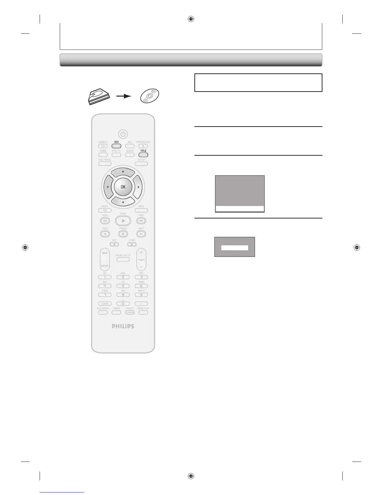 One Title Dubbing (HDD to DVD only)