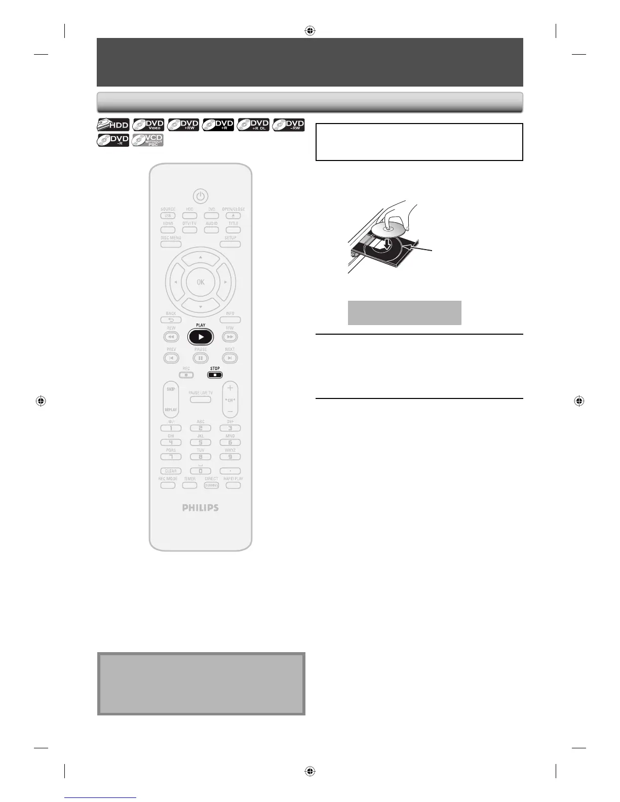 Insert a disc (refer to page 25 on how