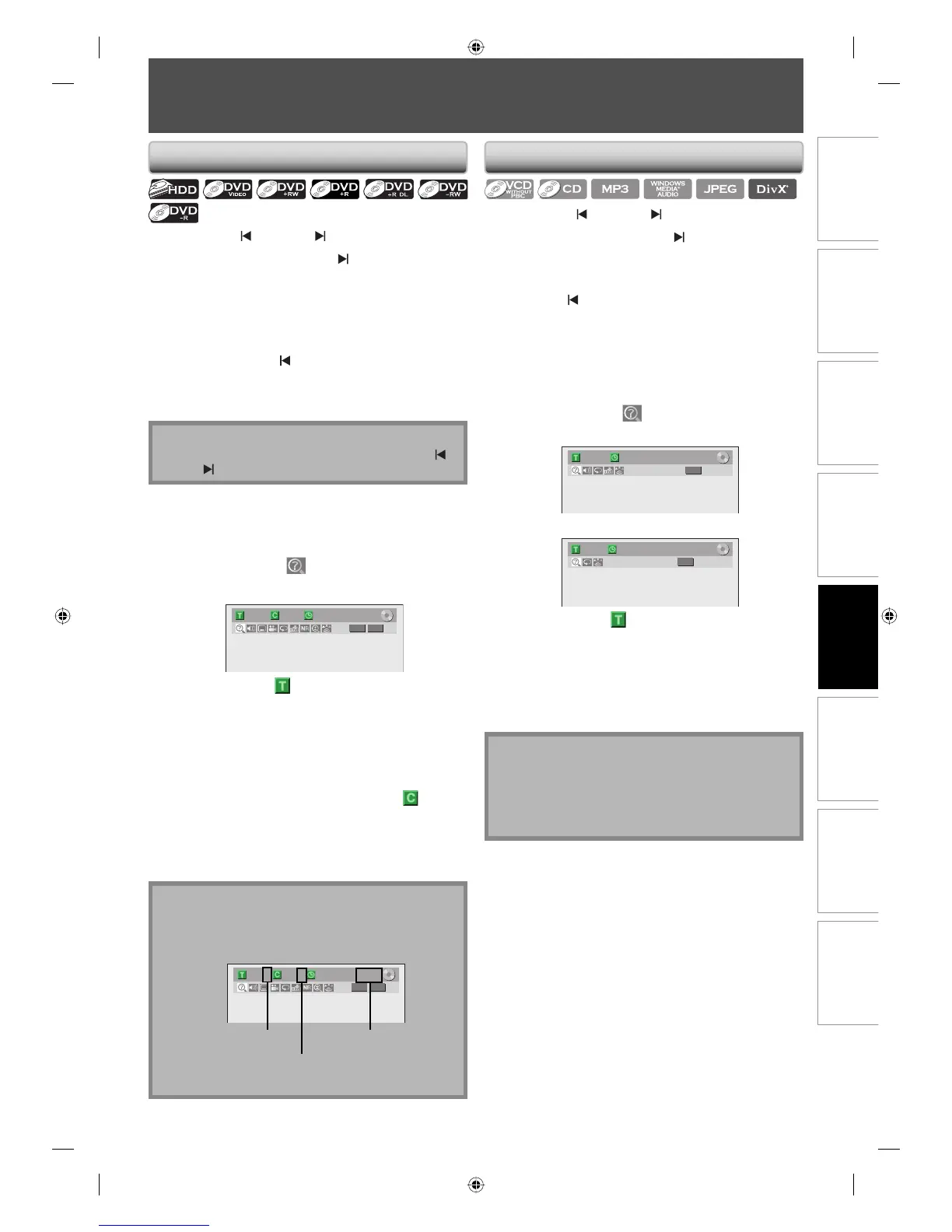 • With regard to HDD, chapter search using [PREV ] /