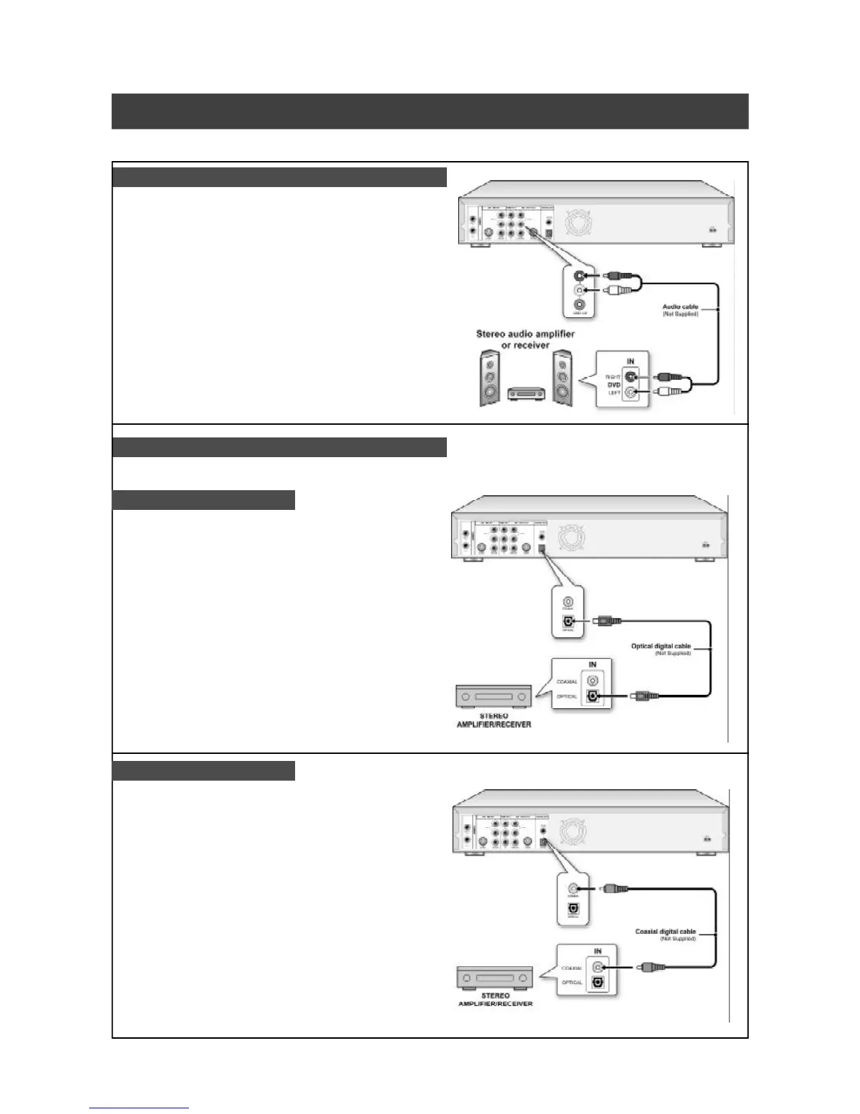 Connect an amplifier with Dolby Digital and DTS decoders to enjoy surround sound.