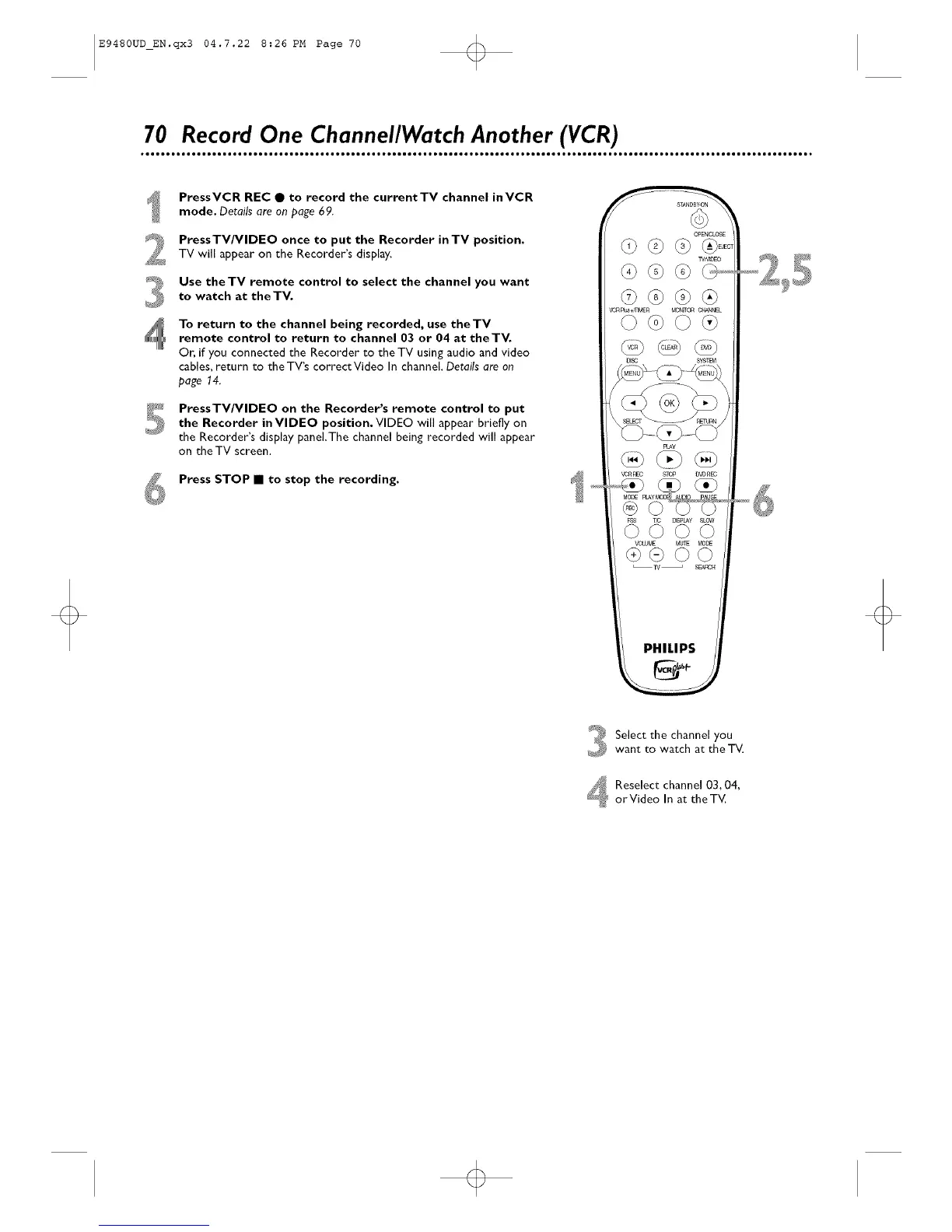 70 Record One Channel/Watch Another (VCR)