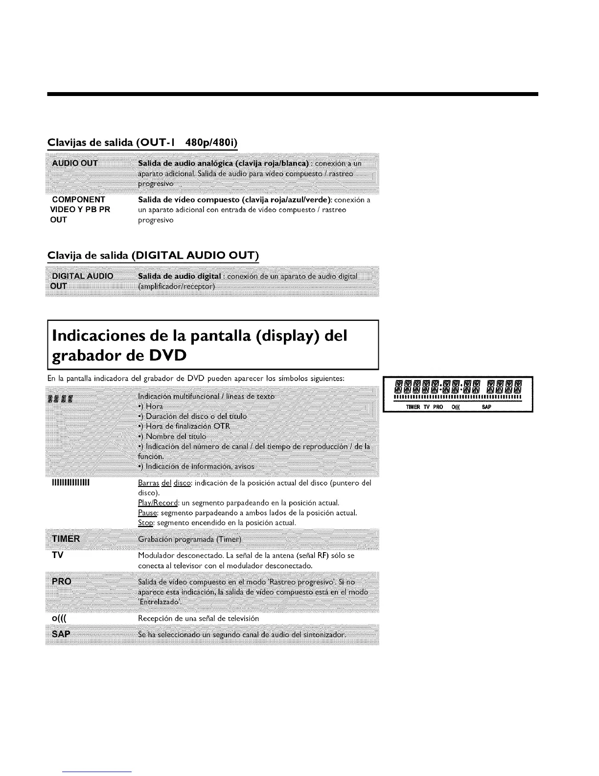 En la pantalla indicadora del grabador de DVD pueden aparecer los simbolos siguientes: I