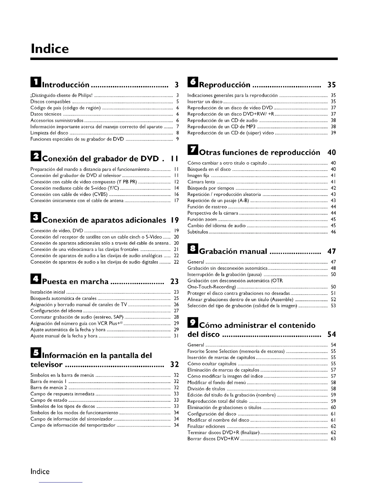 Indicaciones generales para la reproducci6n ........................................... 35