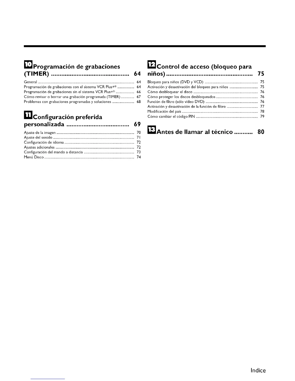 Bloqueo para nifios (DVD y VCD) ............................................................ 75
