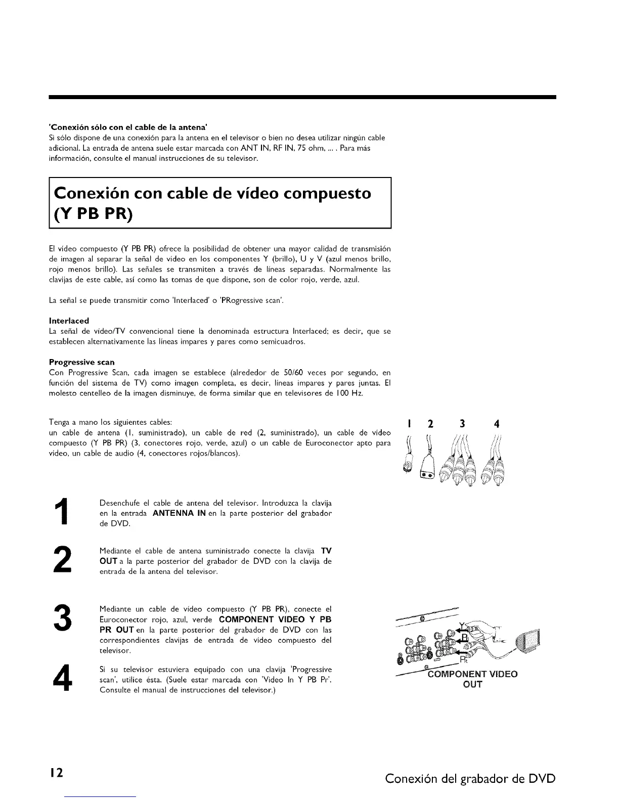 El video compuesto (Y PB PR) ofrece la posibilidad de obtener una mayor calidad de transmisi6n