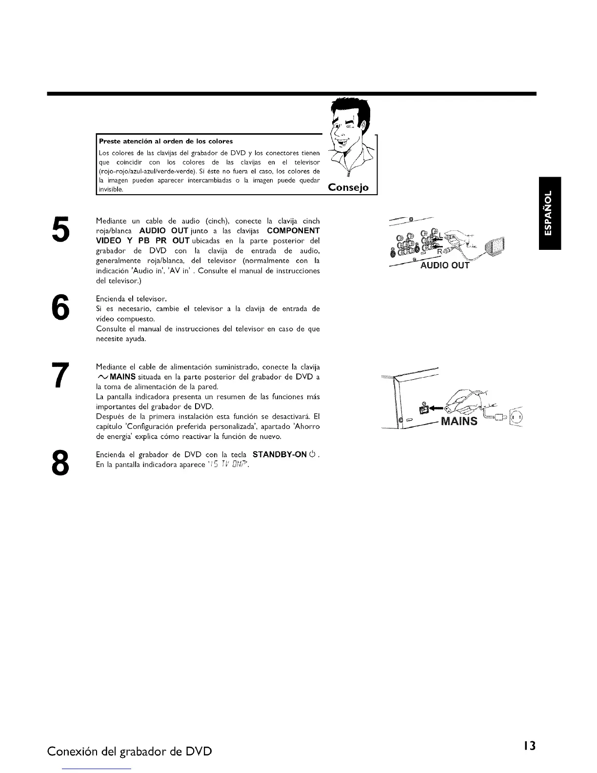 ,%'MAINS situada en la parte posterior del grabador de DVD a