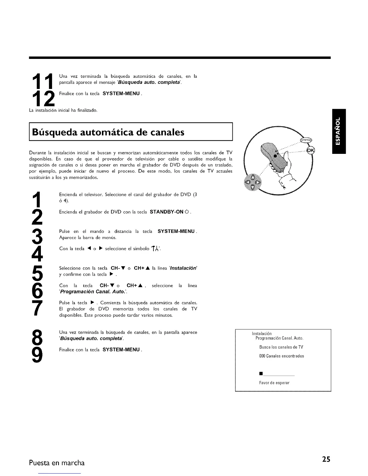 Pulse la tecla • . Comienza la bOsqueda autom_tica de canales.