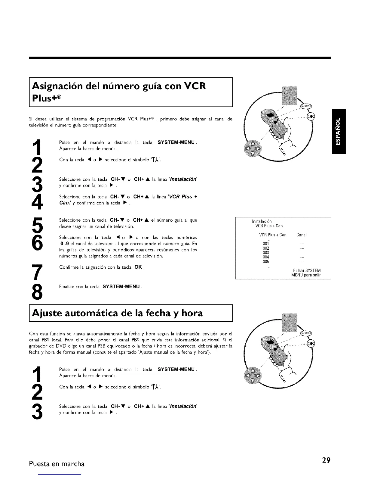 Si desea utilizar el sistema de programaci6n VCR Plus+ ® , primero debe asignar al canal de