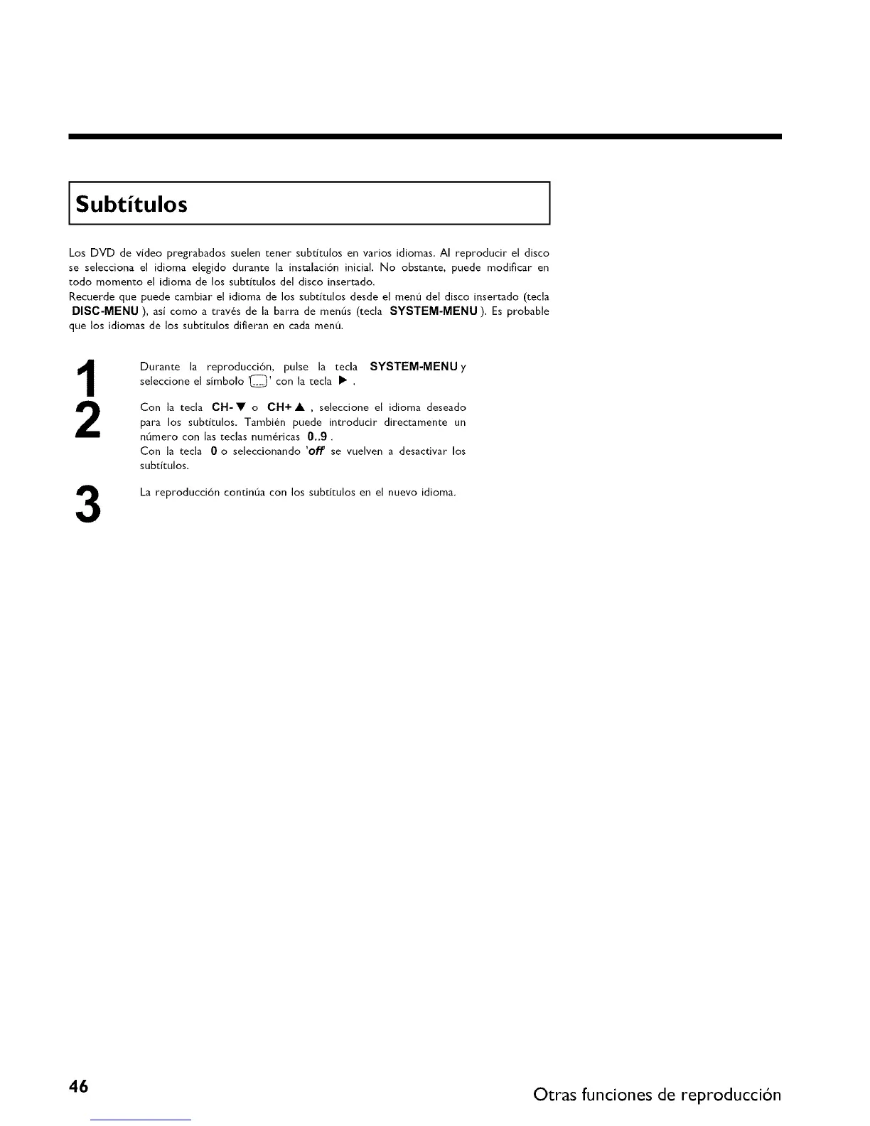Recuerde que puede cambiar el idioma de los subtitulos desde el mend del disco insertado (tecla
