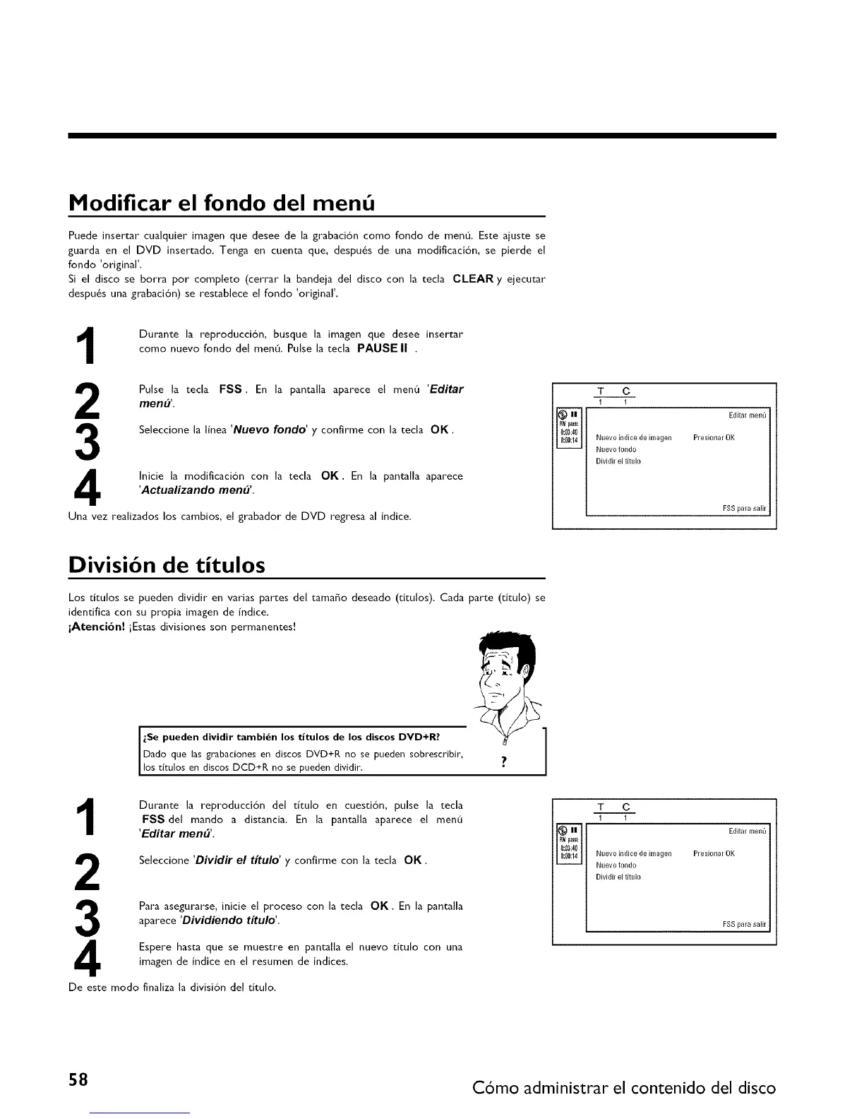 Una vez realizados los cambios, el grabador de DVD regresa al indice.