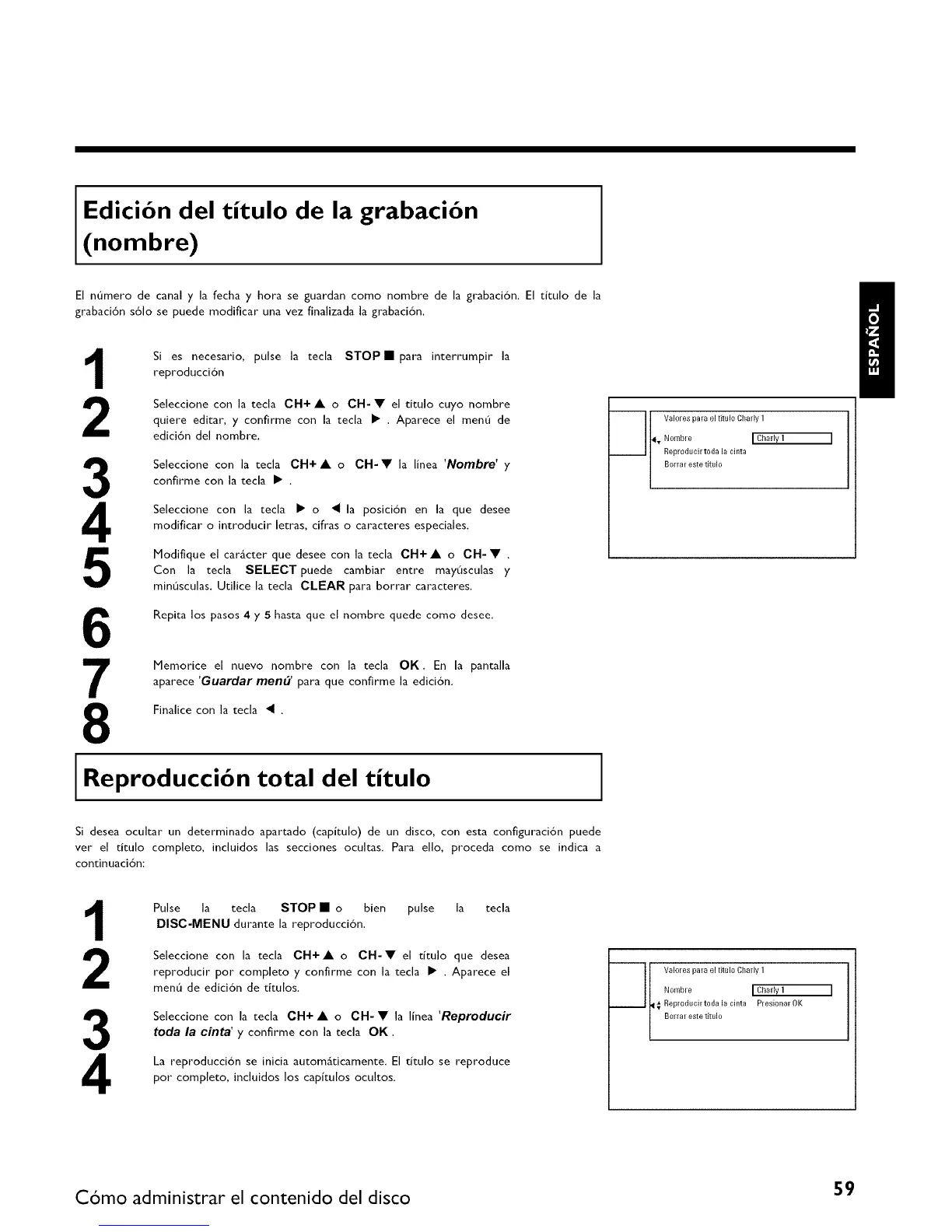 Reproducci6n total del titulo
