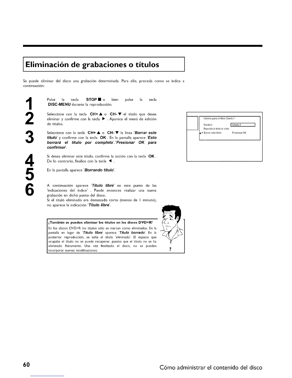 En los discos DVD+R los titulos s6lo se marcan como elirninados. En la
