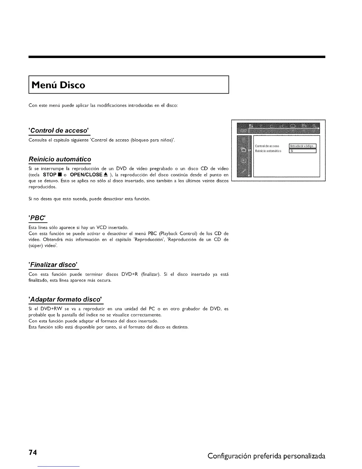 Con esta funcidn puede terminar discos DVD+R (finalizar). Si el disco insertado ya est_
