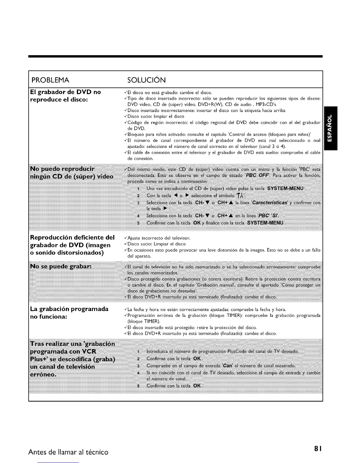 ,/El cable de conexi6n entre el televisor y el grabador de DVD est_i suelto: compruebe el cable