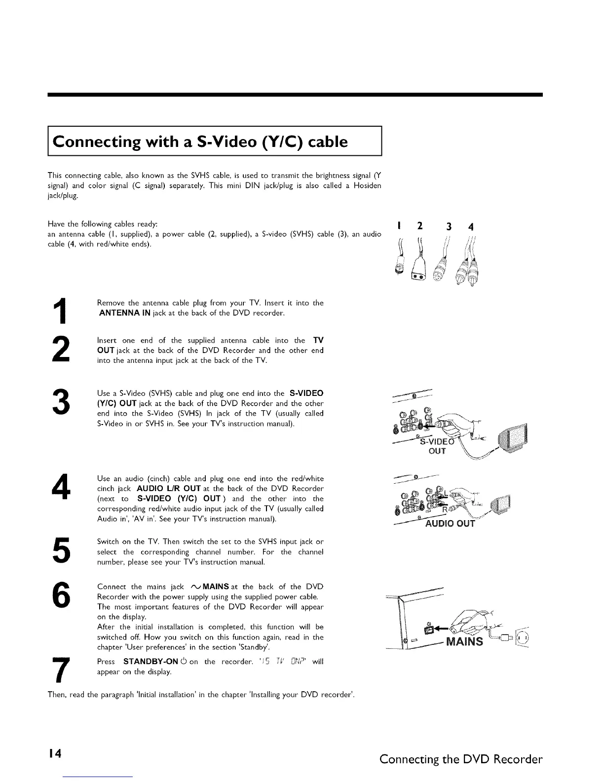 Then, read the paragraph 'Initial installation' in the chapter 'Installing your DVD recorder'.