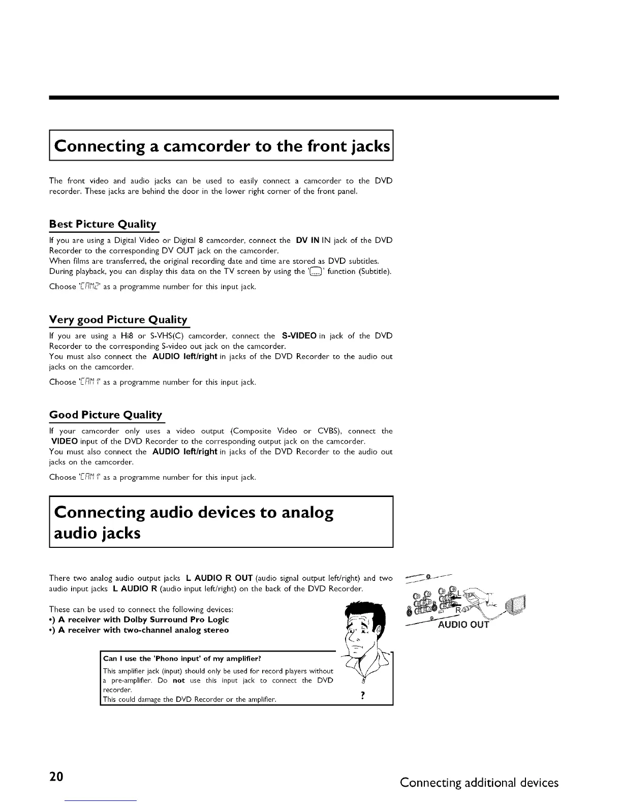 a pre-amplifier. Do not use this input jack co connect the DVD
