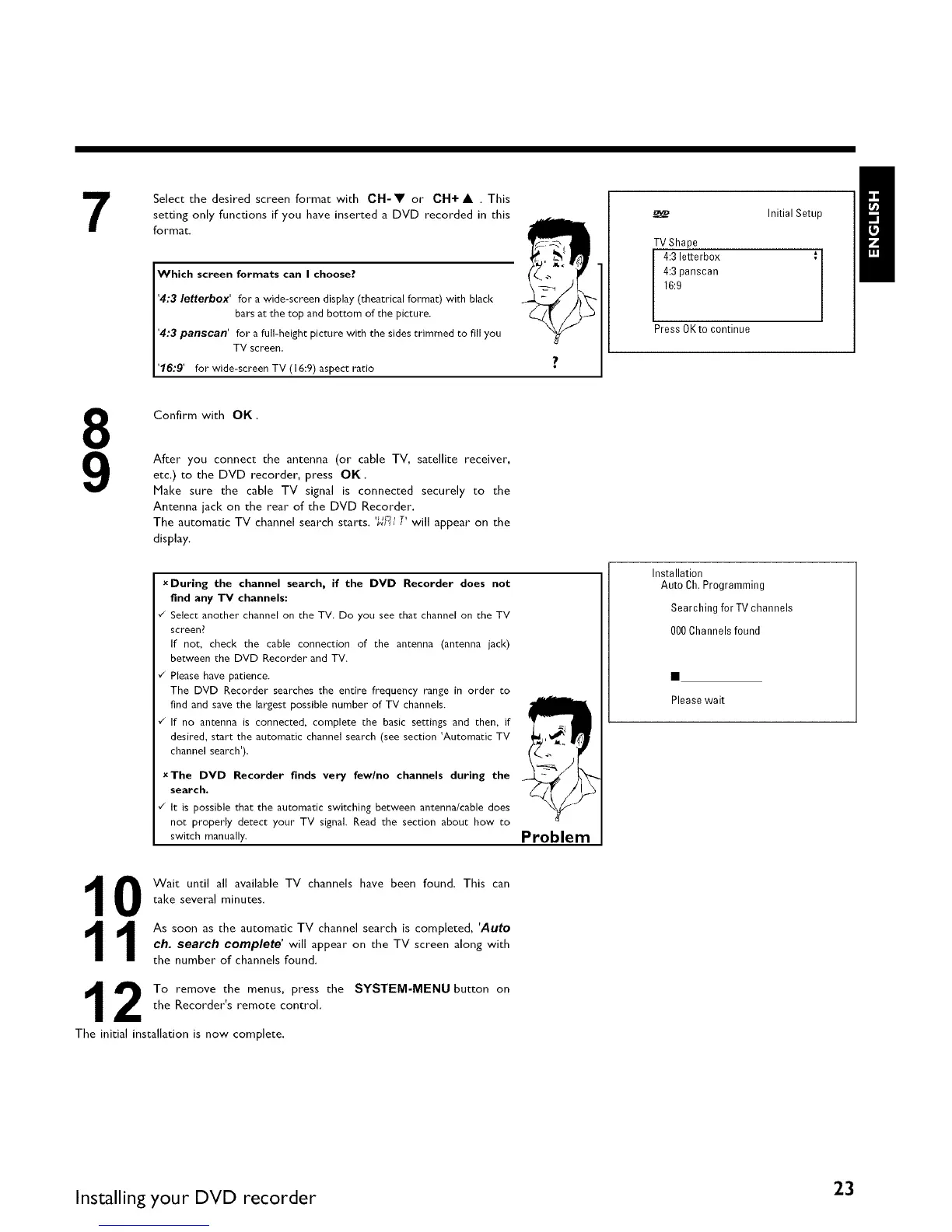 xDuring the channel search, if the DVD Recorder does not