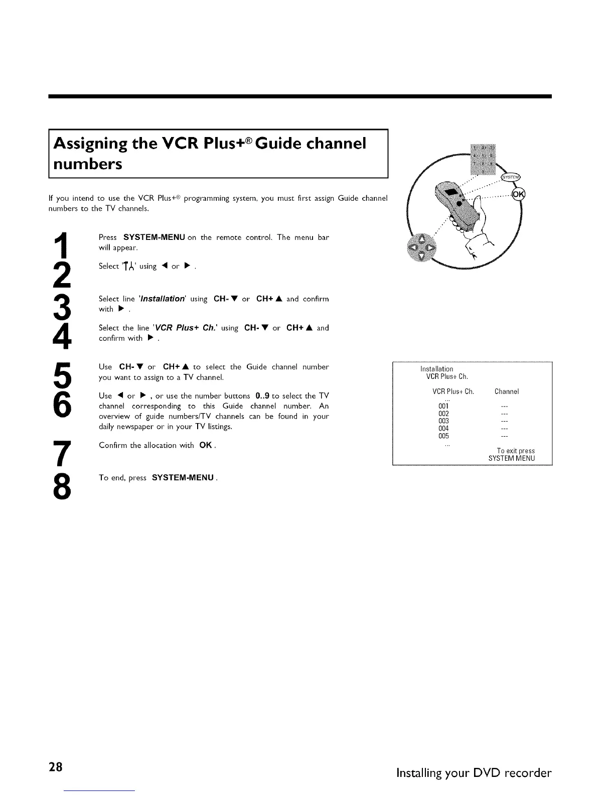If you intend to use the VCR Plus+ ® programming system, you must first assign Guide channel