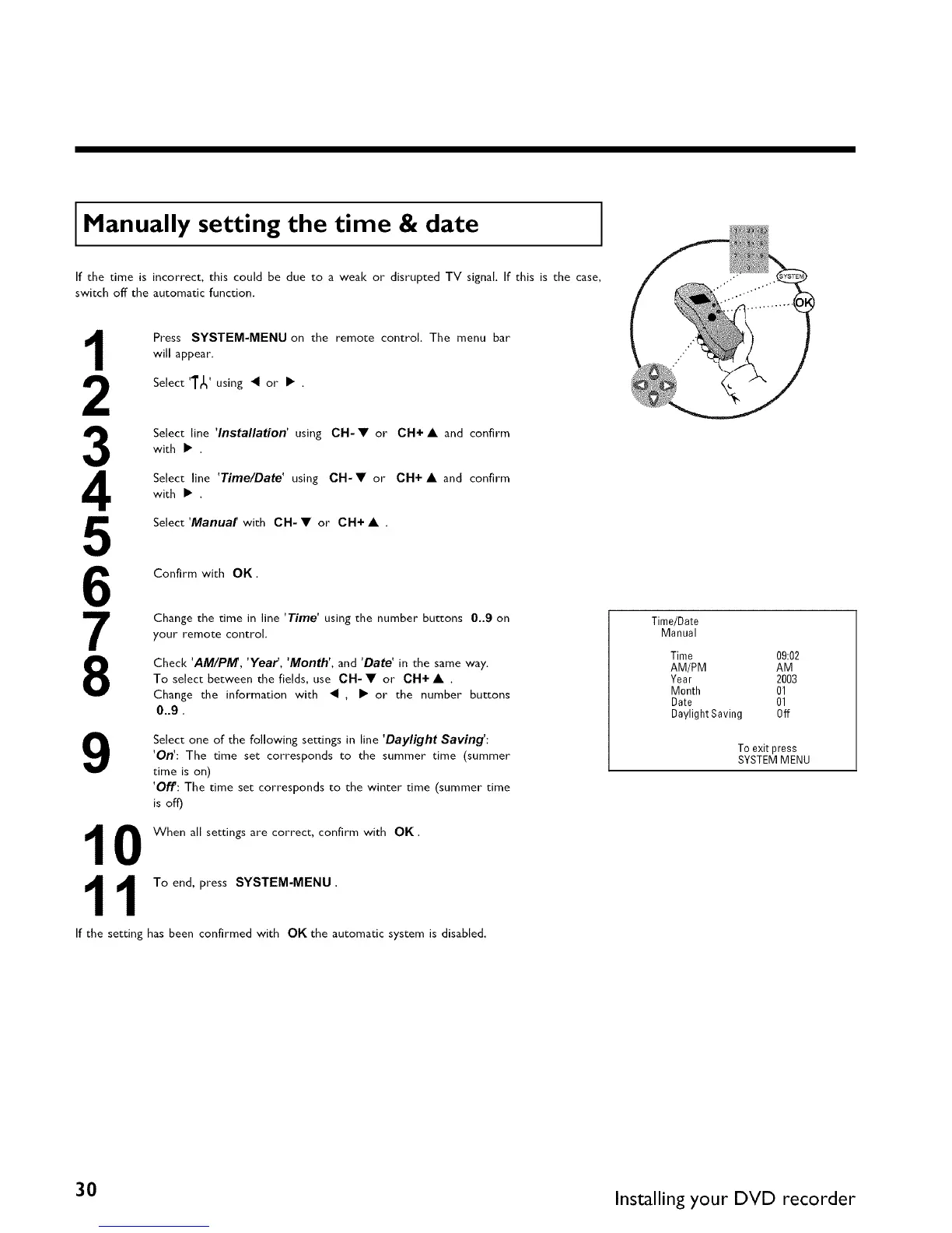 If the time is incorrect, this could be due to a weal< or disrupted TV signal. If this is the case,