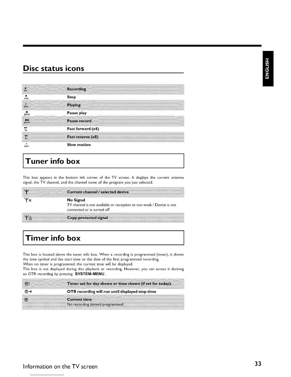 This box is not displayed during disc playback or recording. However, you can access it duriong