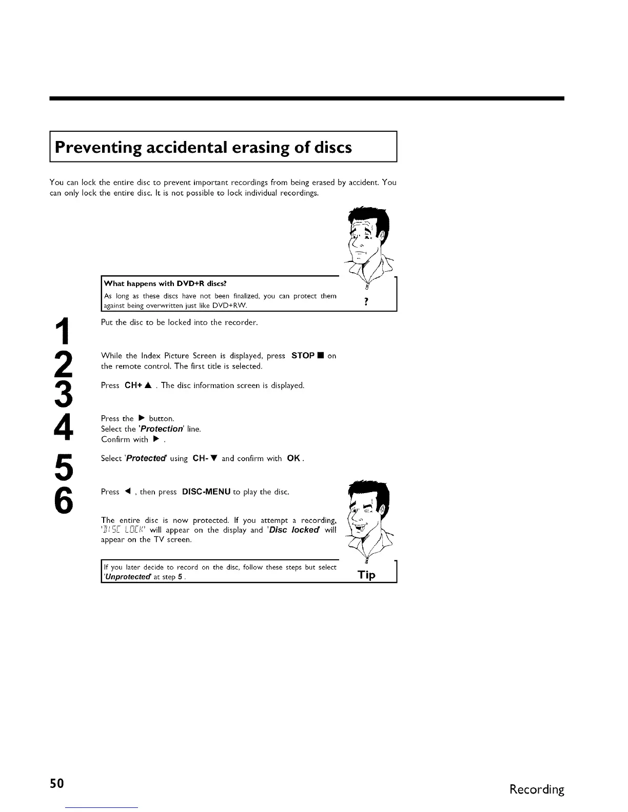You can loci< the entire disc to prevent important recordings from being erased by accident. You