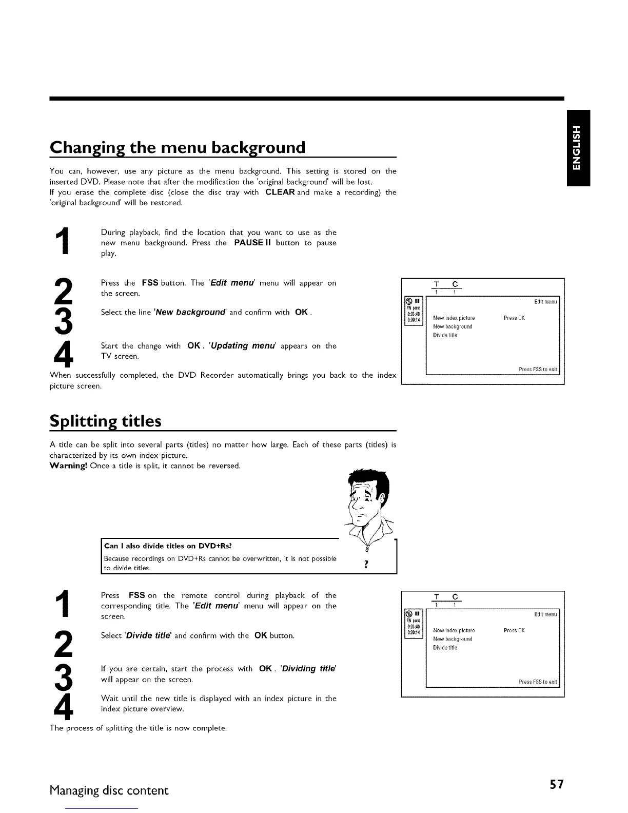 When successfully completed, the DVD Recorder automatically brings you back to the index