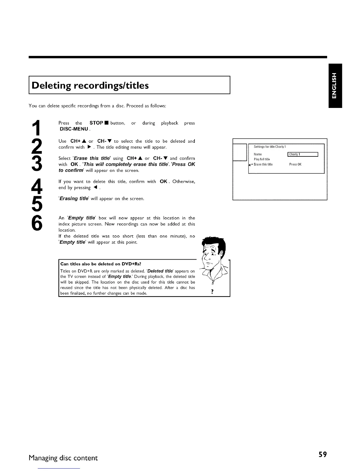 Select 'Erase this title' using CH+ • or CH-• and confirm