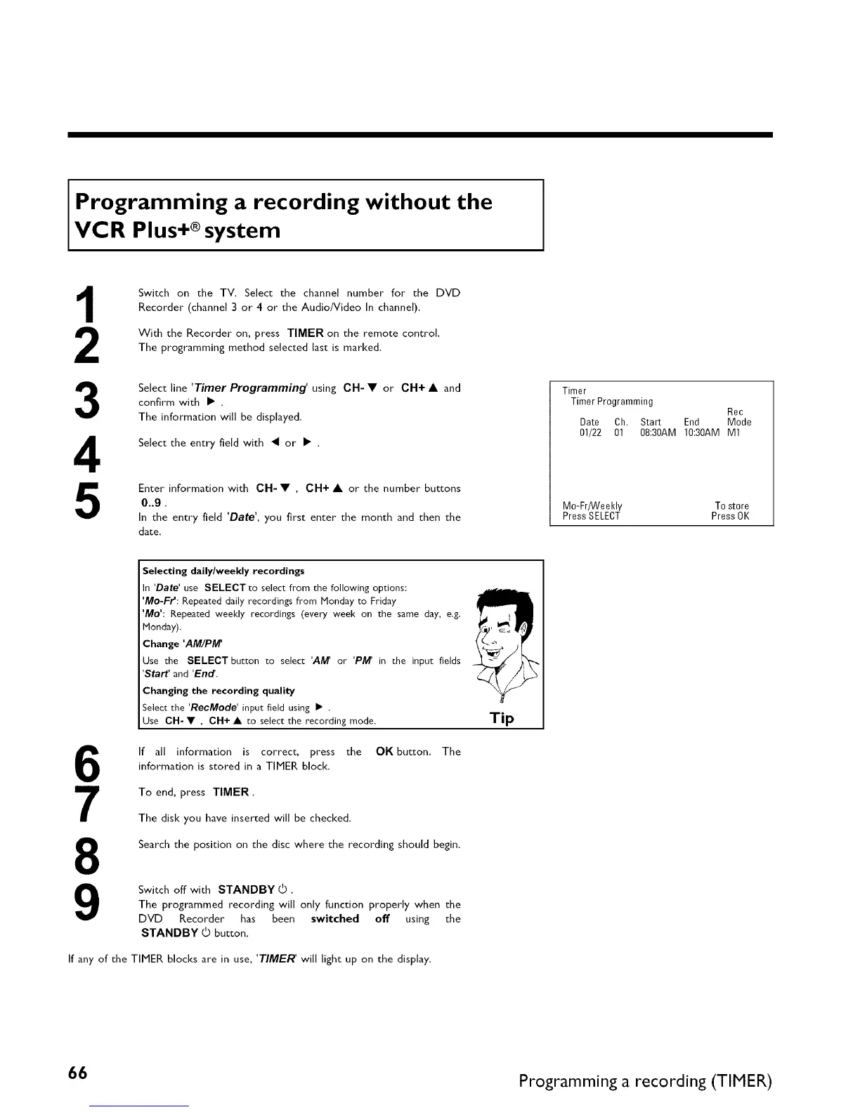 Select line 'Timer Programming' using CH- • or CH+ • and