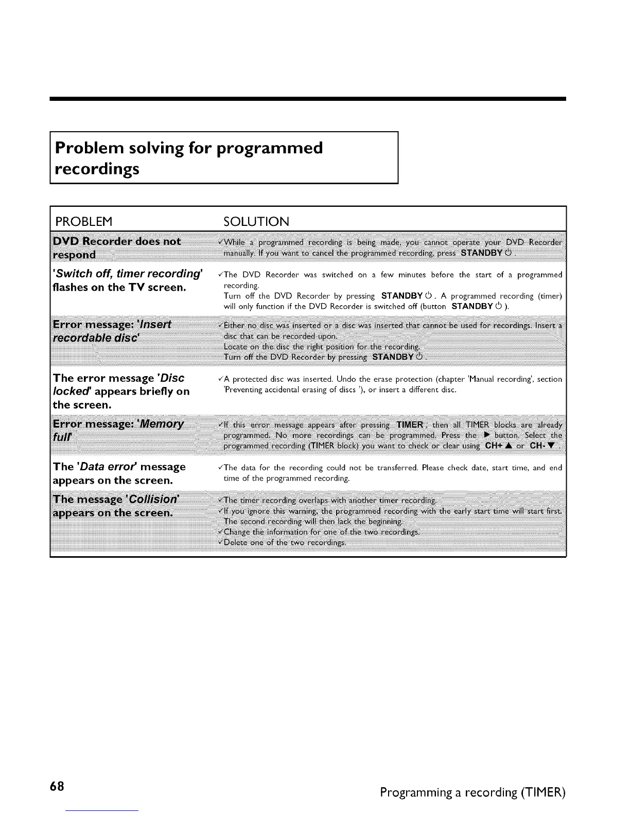 •ZThe DVD Recorder was switched on a few minutes before the start of a programmed