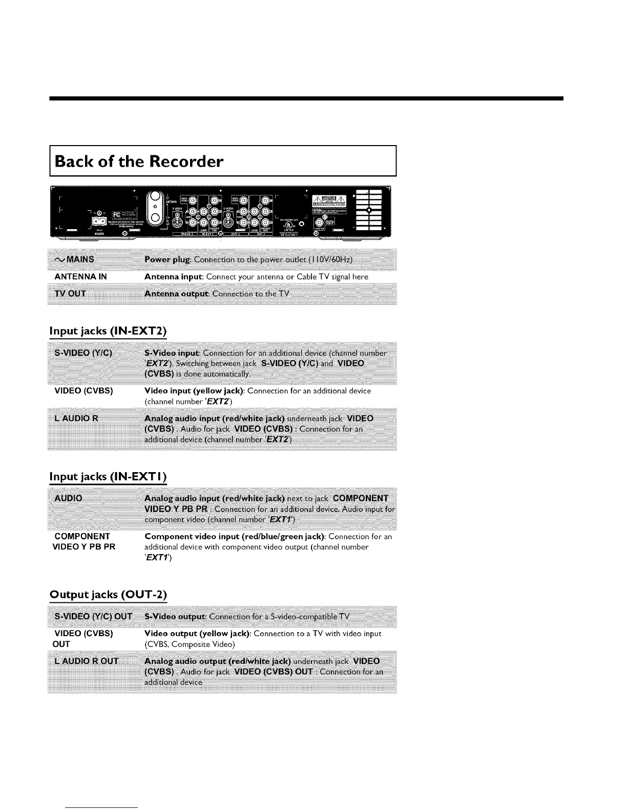 VIDEO (CVBS) Video input (yellow jack): Connection for an additional device