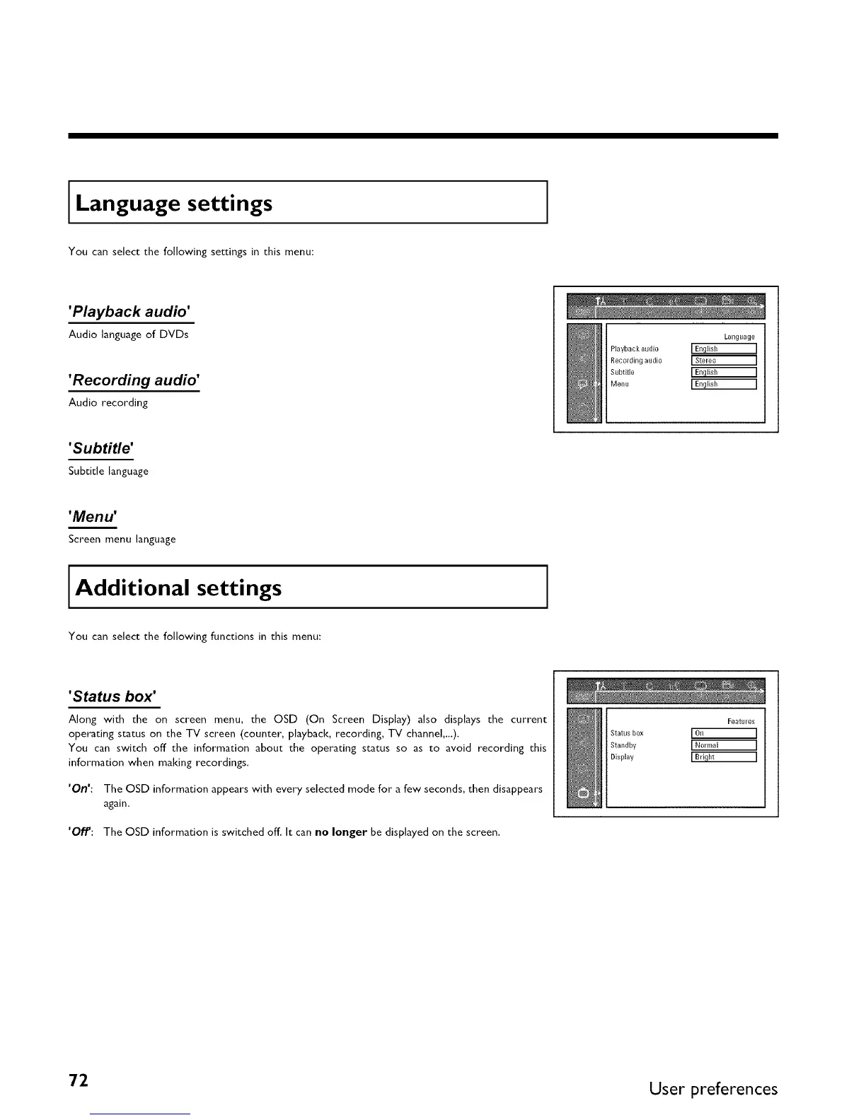 operating status on the TV screen (counter, playback, recording, TV channel,.,,),