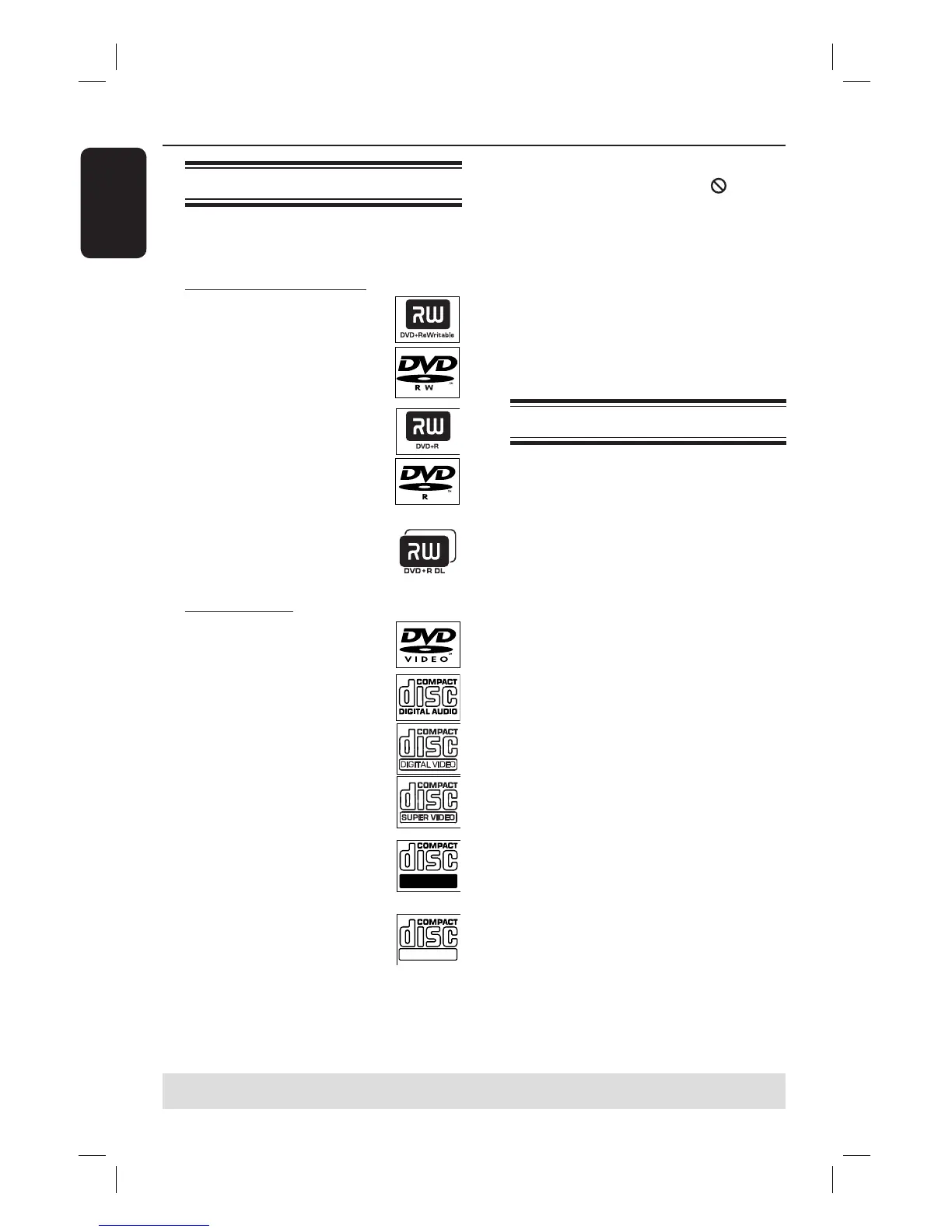 TIPS: Some discs cannot be played on this DVD recorder due to the con guration and characteristics