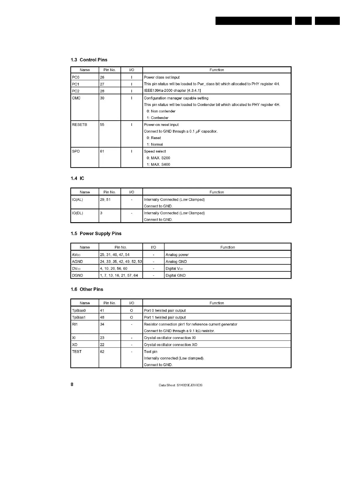 Circuit-, IC descriptions and list of abbreviations