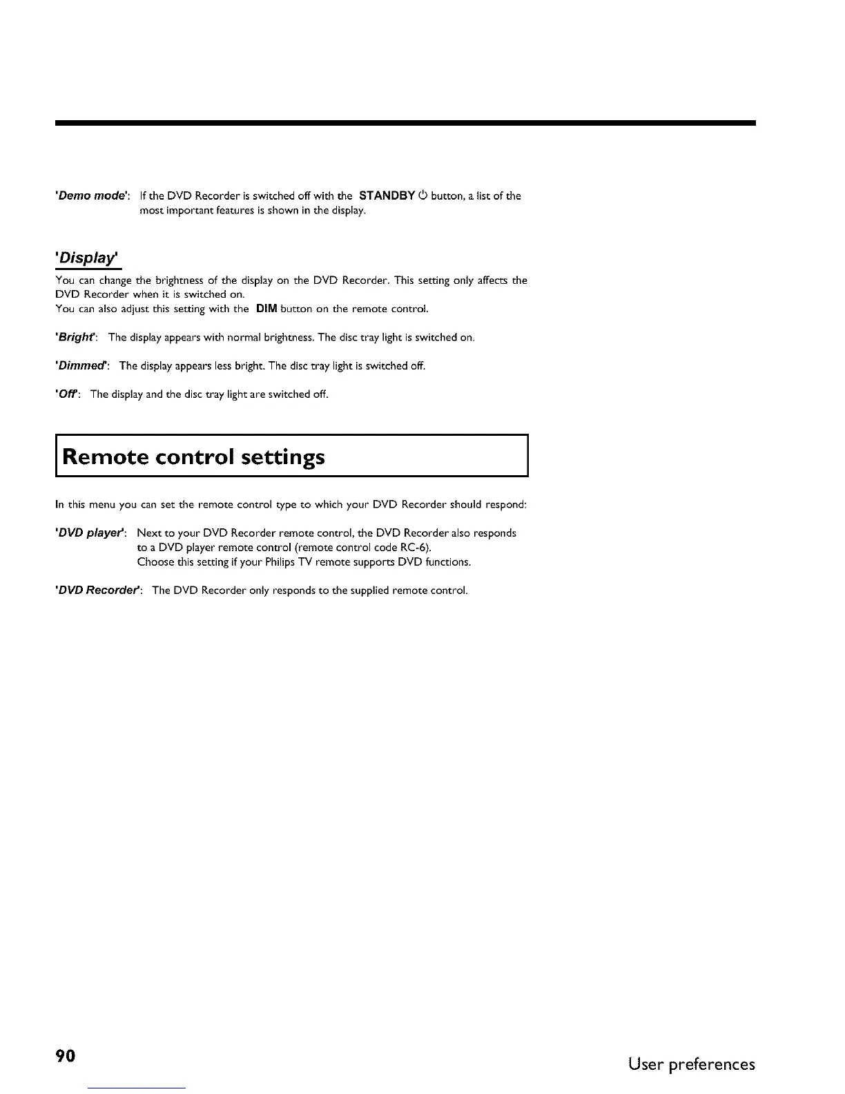 'DVD RecorderS: The DVD Recorder only responds to the supplied remote control.
