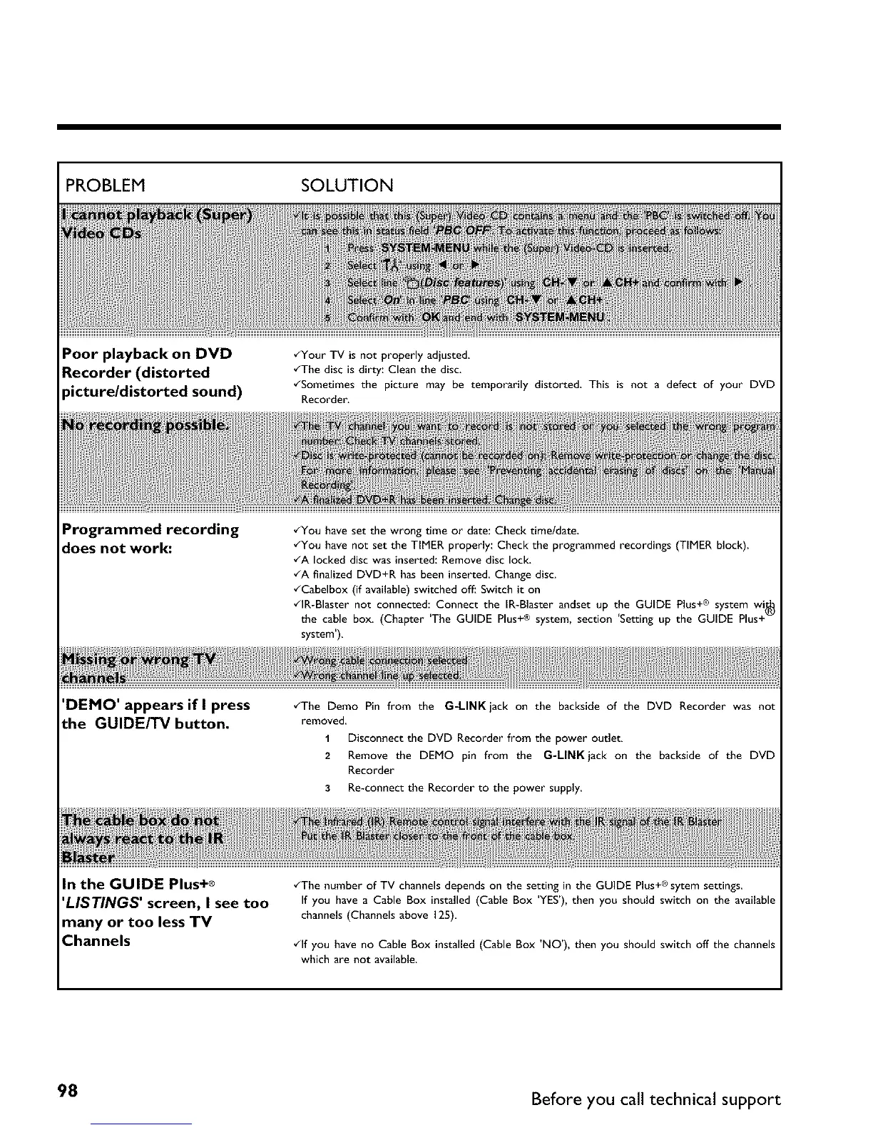 98 Before you call technical support