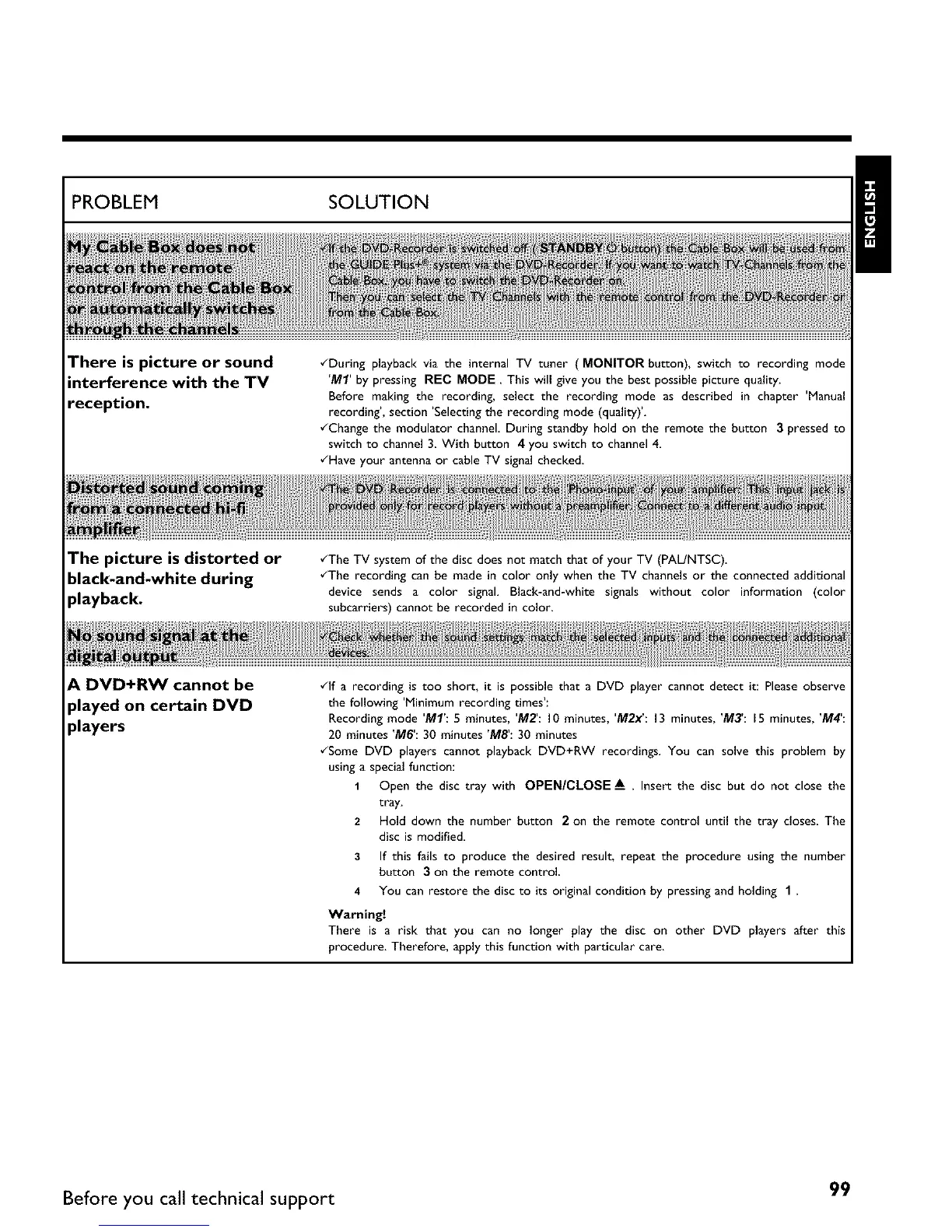 Before you call technical support 99