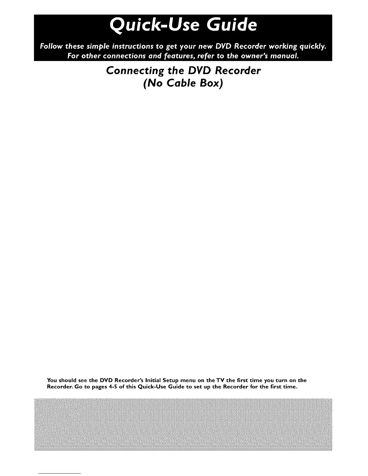 You should see the DVD Recorder's Initial Setup menu on theTV the first time you turn on the