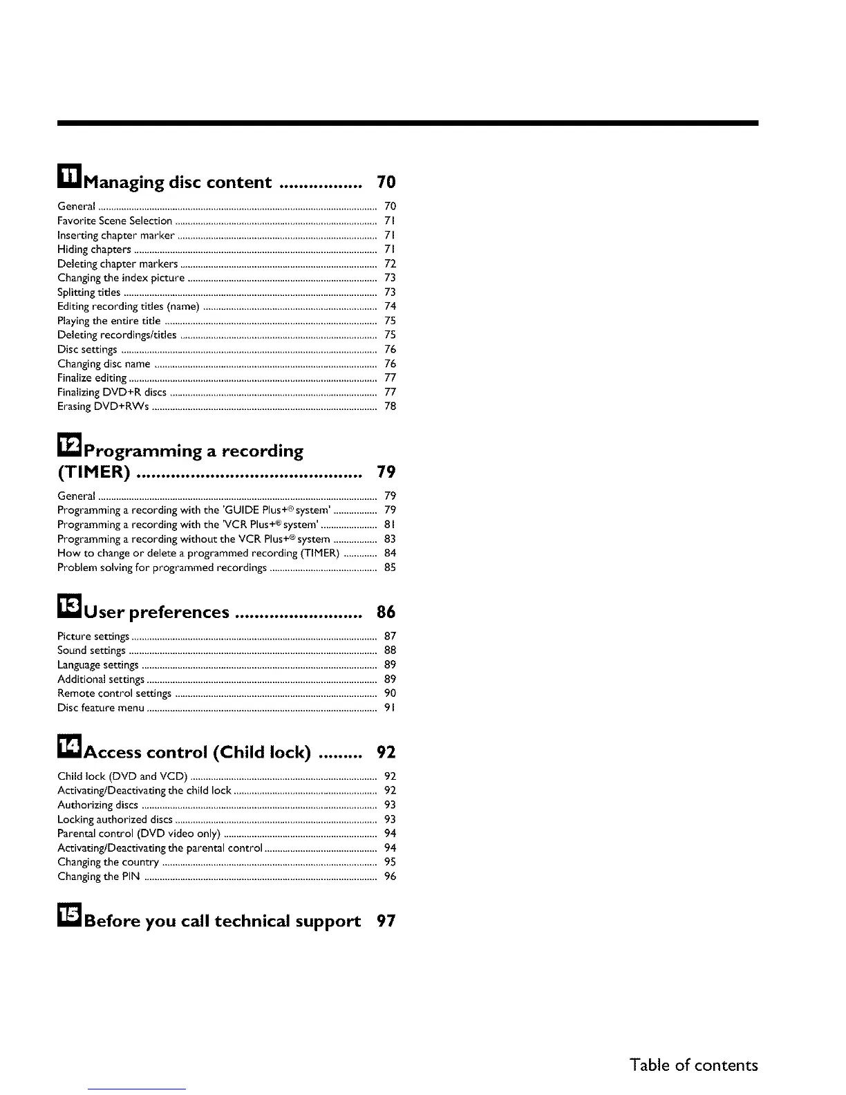 Programming a recording with the 'GUIDE Plus+® system ' ,................ 79