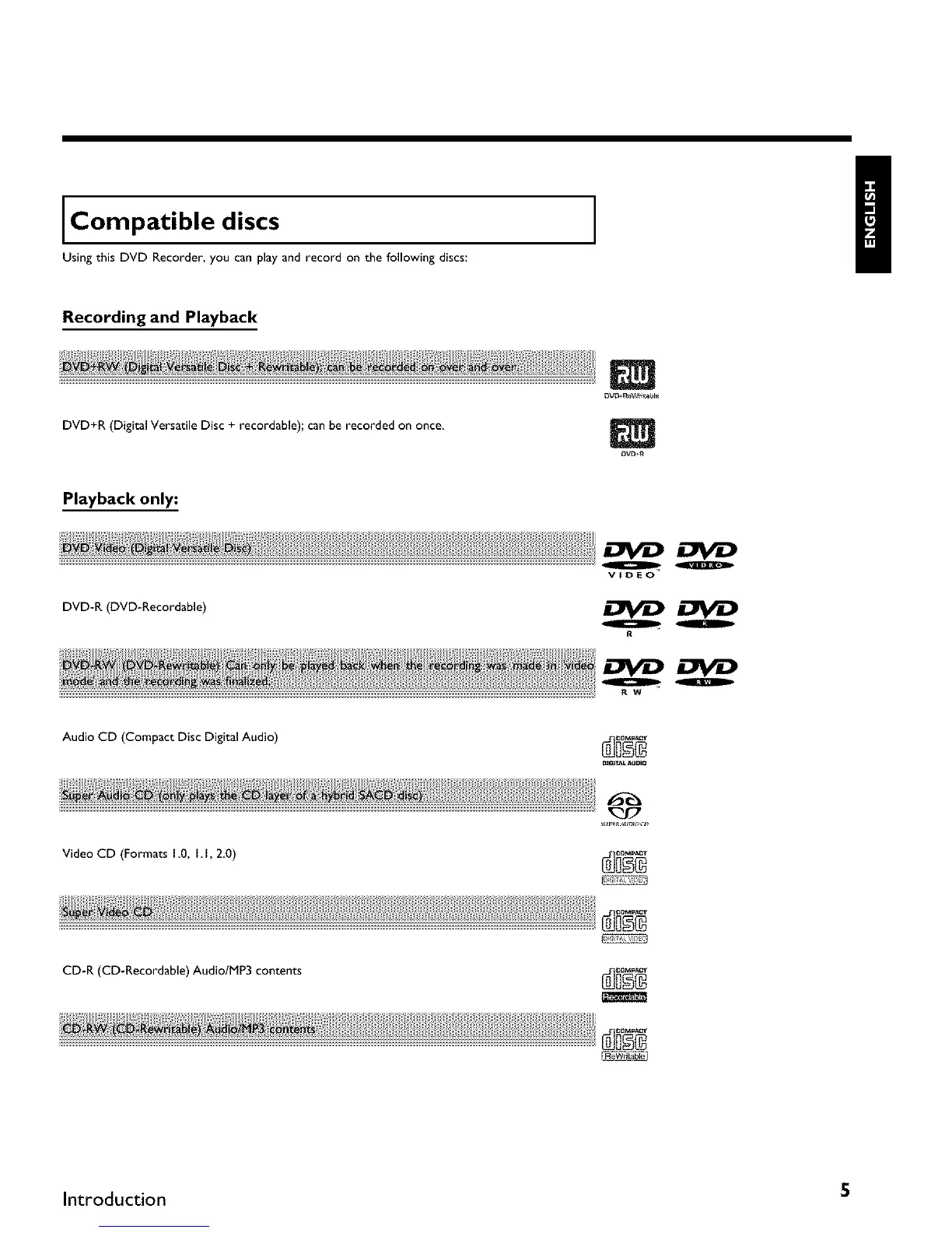 Using this DVD Recorder, you can play and record on the following discs: