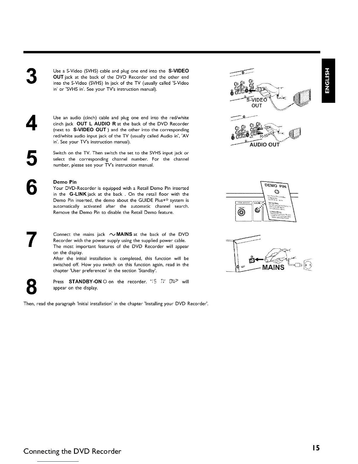 Then, read the paragraph 'Initial installation' in the chapter 'Installing your DVD Recorder'.