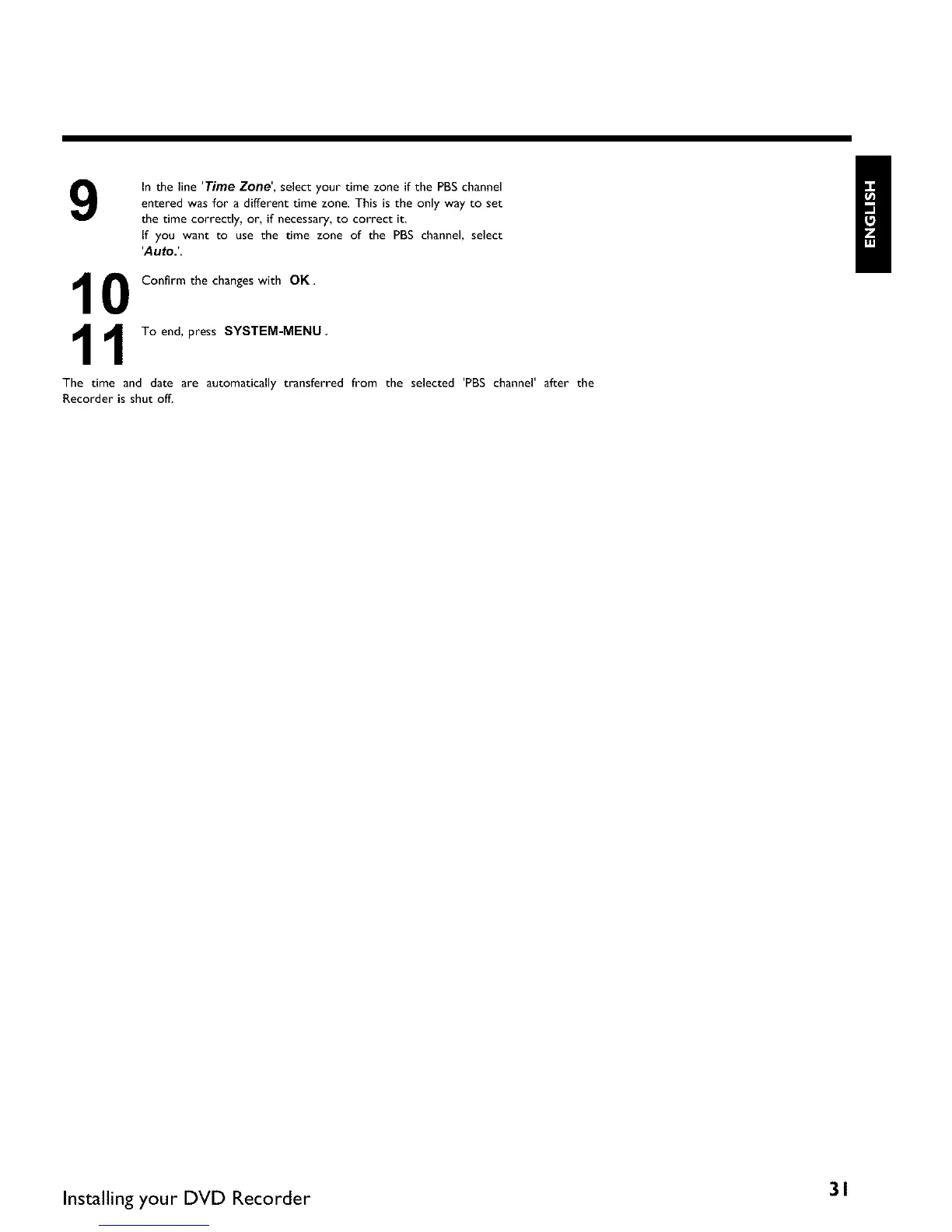 The time and date are automatically transferred from the selected 'PBS channel' after the