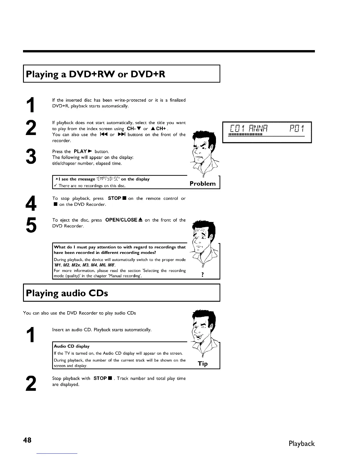 If the TV is turned on, the Audio CD display will appear on the screen,