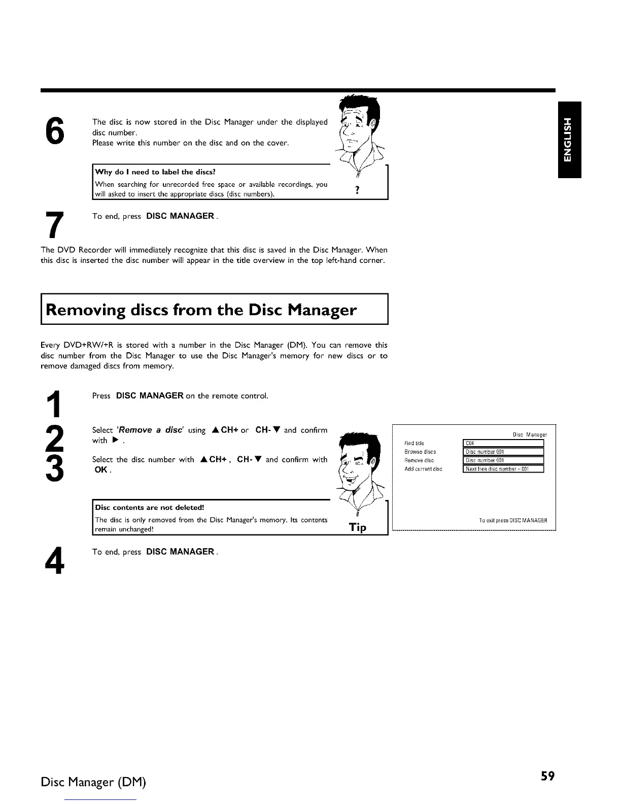 disc number from the Disc Manager to use the Disc Manager's memory for new discs or to
