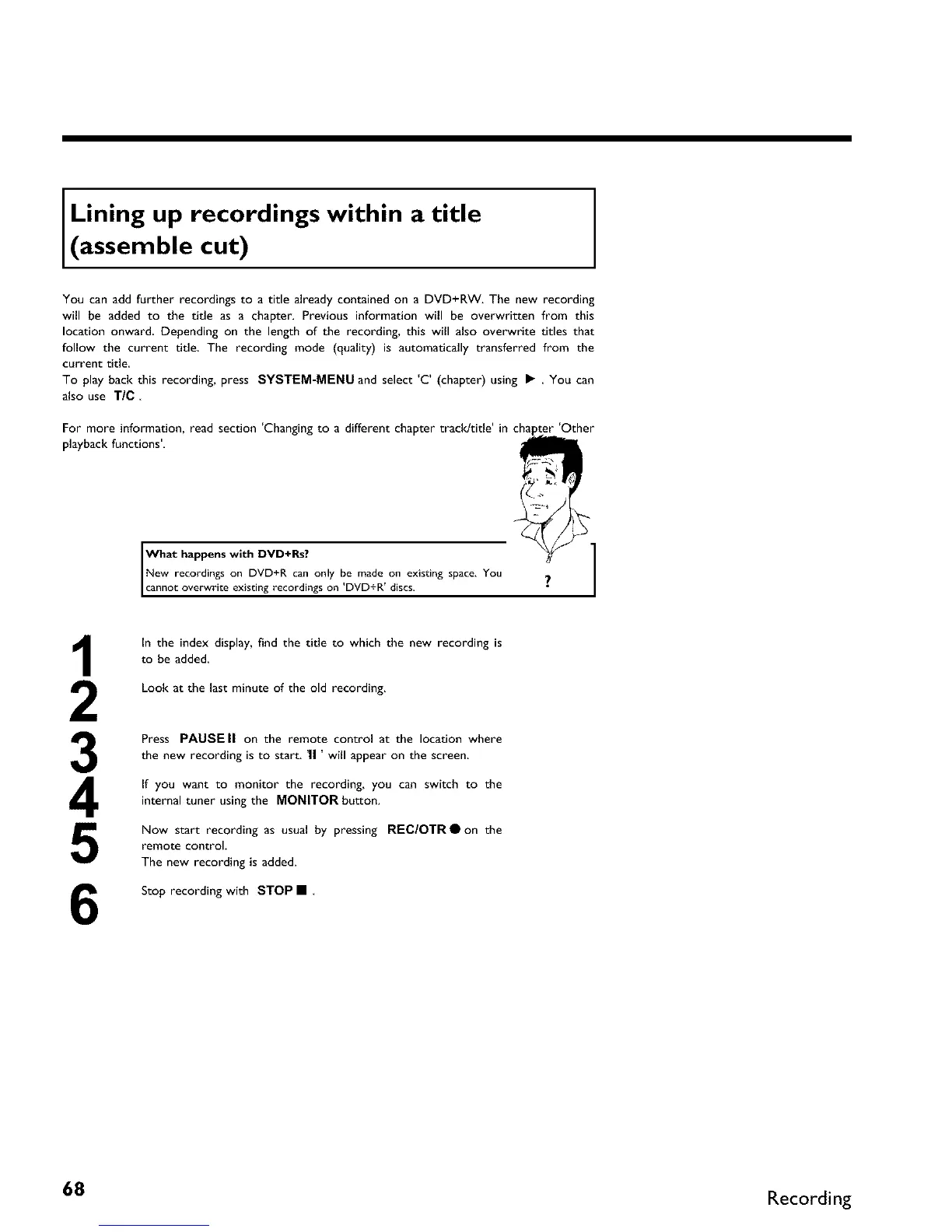 You can add further recordings to a title already contained on a DVD+RW. The new recording