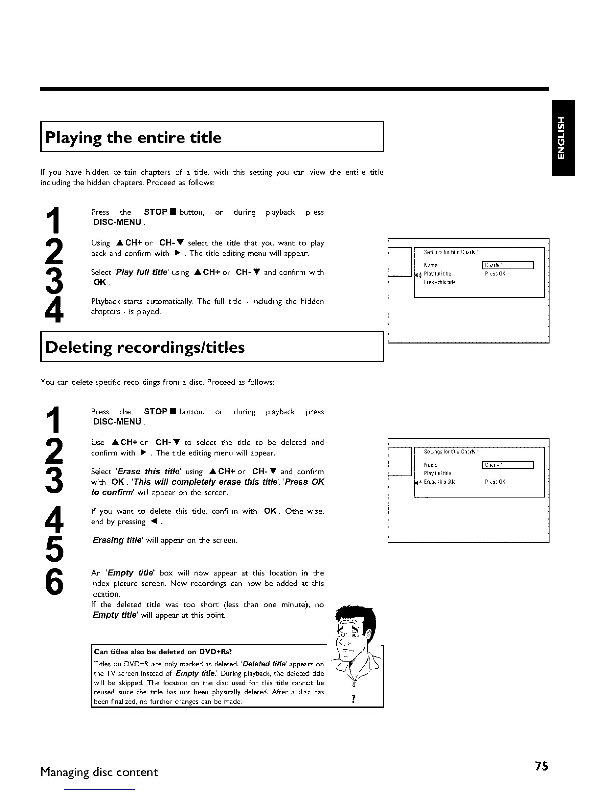 Titles on DVD+R are only marked as deleted. 'Deleted title appears on