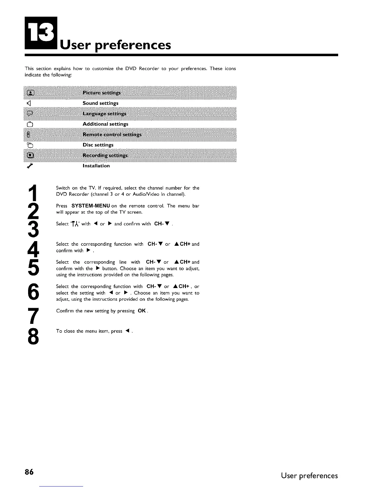This section explains how to customize the DVD Recorder to your preferences These icons