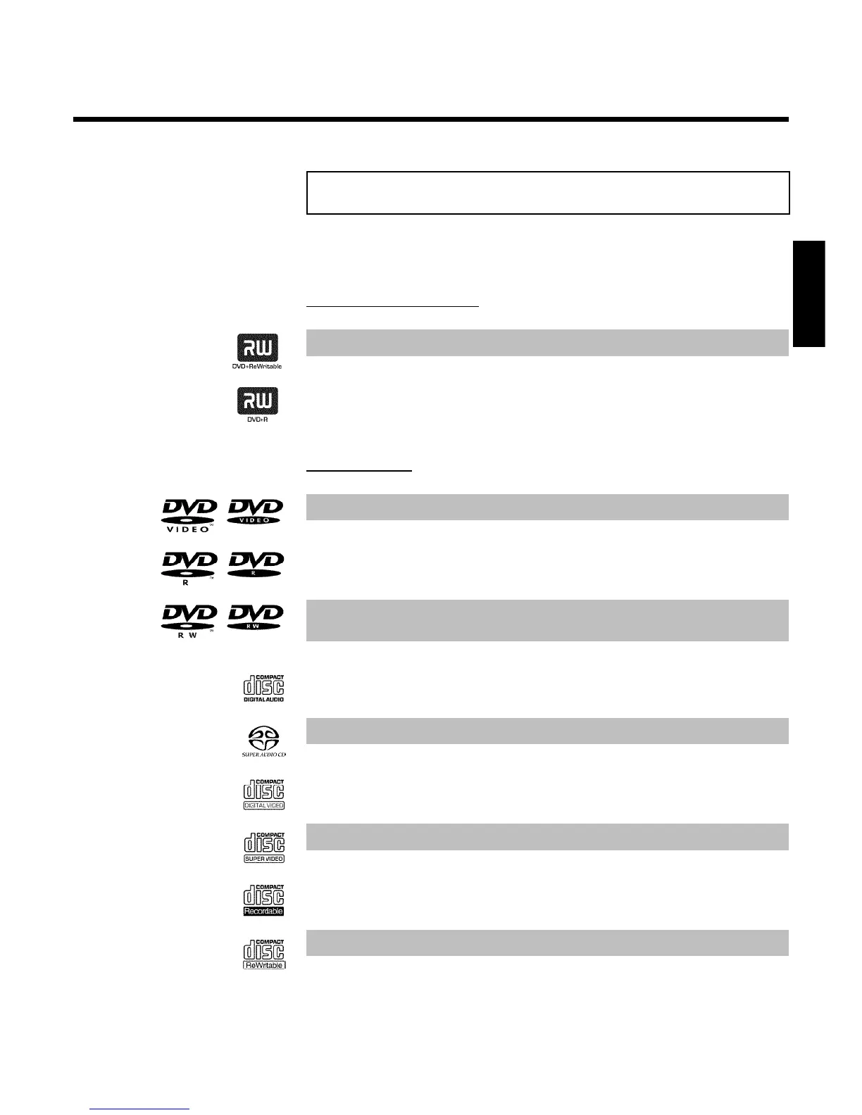 The following discs can be used in your DVD recorder for playback and recording: