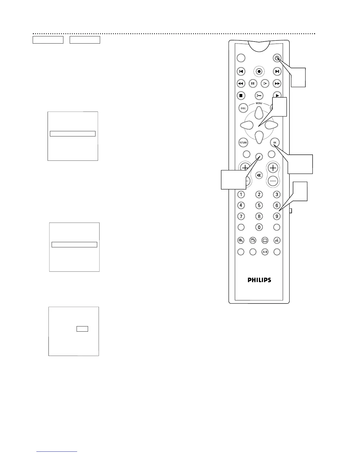 Press 89 to select VCR Plus+ programming, then press :.