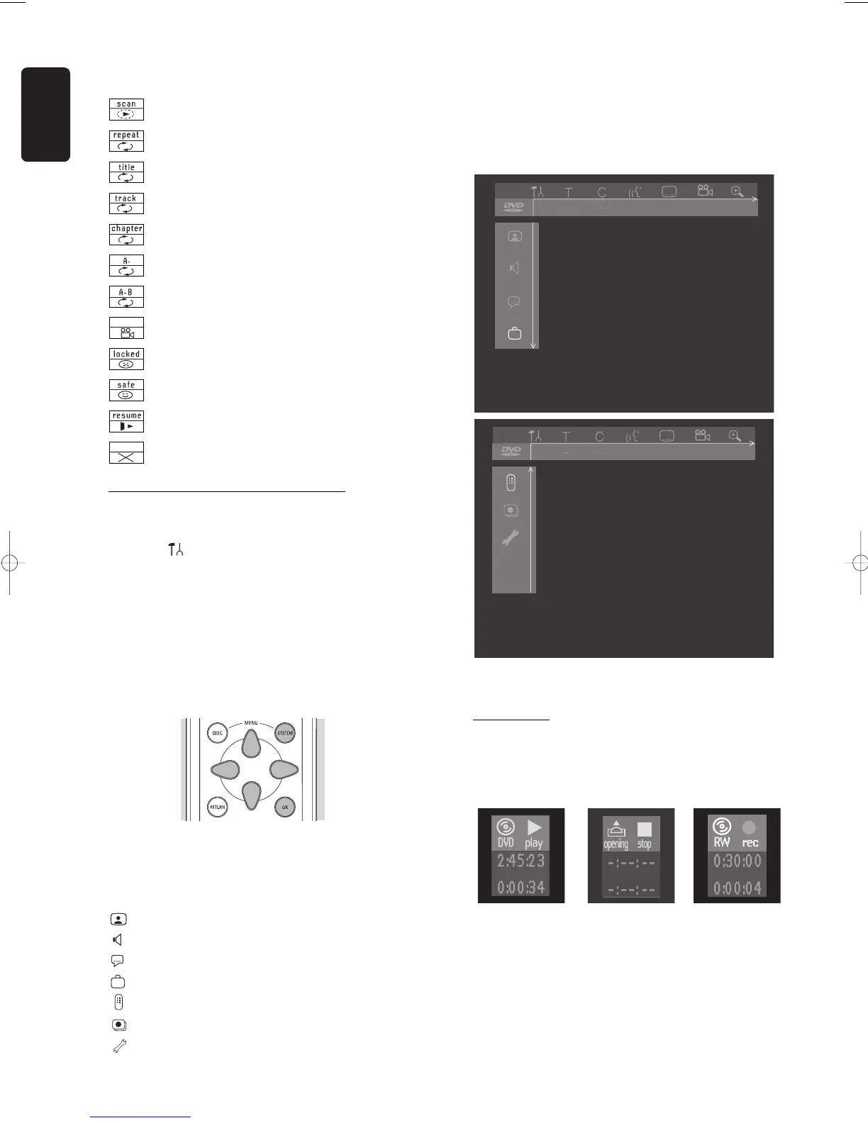 displays the current status of the recorder and the disc