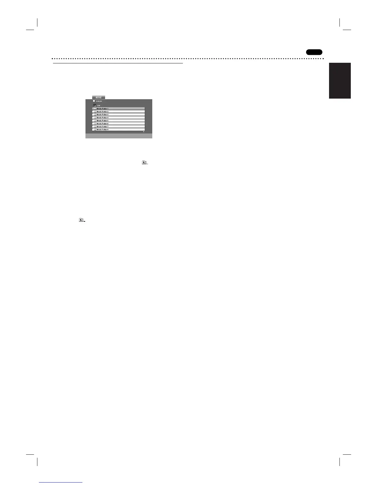 Folder list, use the 3 / 4 buttons on the remote to